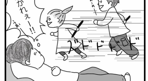 娘(戦闘系)、息子(のほほん系)、夫(反応極薄系)、私(描いてる人)の4人家族の日常。