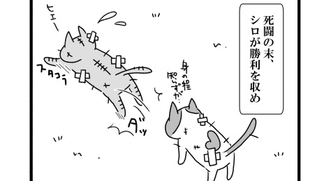 娘(戦闘系)、息子(のほほん系)、夫(反応極薄系)、私(描いてる人)の4人家族の日常。