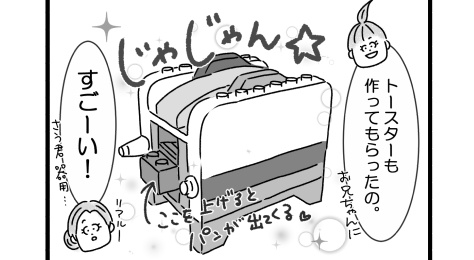 娘(戦闘系)、息子(のほほん系)、夫(反応極薄系)、私(描いてる人)の4人家族の日常。