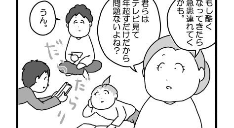娘(戦闘系)、息子(のほほん系)、夫(反応極薄系)、私(描いてる人)の4人家族の日常。