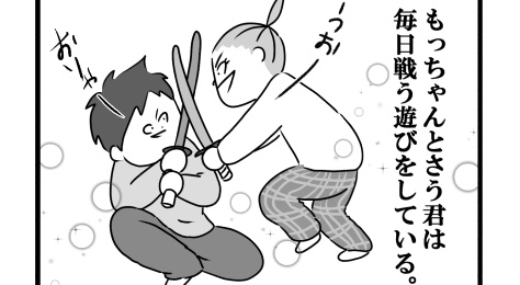 娘(戦闘系)、息子(のほほん系)、夫(反応極薄系)、私(描いてる人)の4人家族の日常。
